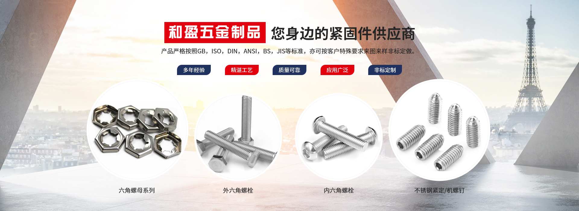 興化市和盈五金制品有限公司創(chuàng)建于2010年,坐落在全國不銹鋼名鎮(zhèn)———江蘇戴南。本公司集當?shù)夭讳P鋼優(yōu)勢和全國銷售網(wǎng)點,以不銹鋼緊固件產(chǎn)品為主體的企業(yè)。我們將始終如一的堅持以客戶為中心,堅持以品質(zhì)取勝的發(fā)展戰(zhàn)略,依靠科學技術(shù)不斷創(chuàng)新。秉承這種精神,我們一起和諧合作,共贏未來。產(chǎn)品嚴格按照GB,ISO,DIN,ANSI,BS,JIS等標準,亦可按客戶特殊要求來圖來樣非標定做。產(chǎn)品廣泛應用......